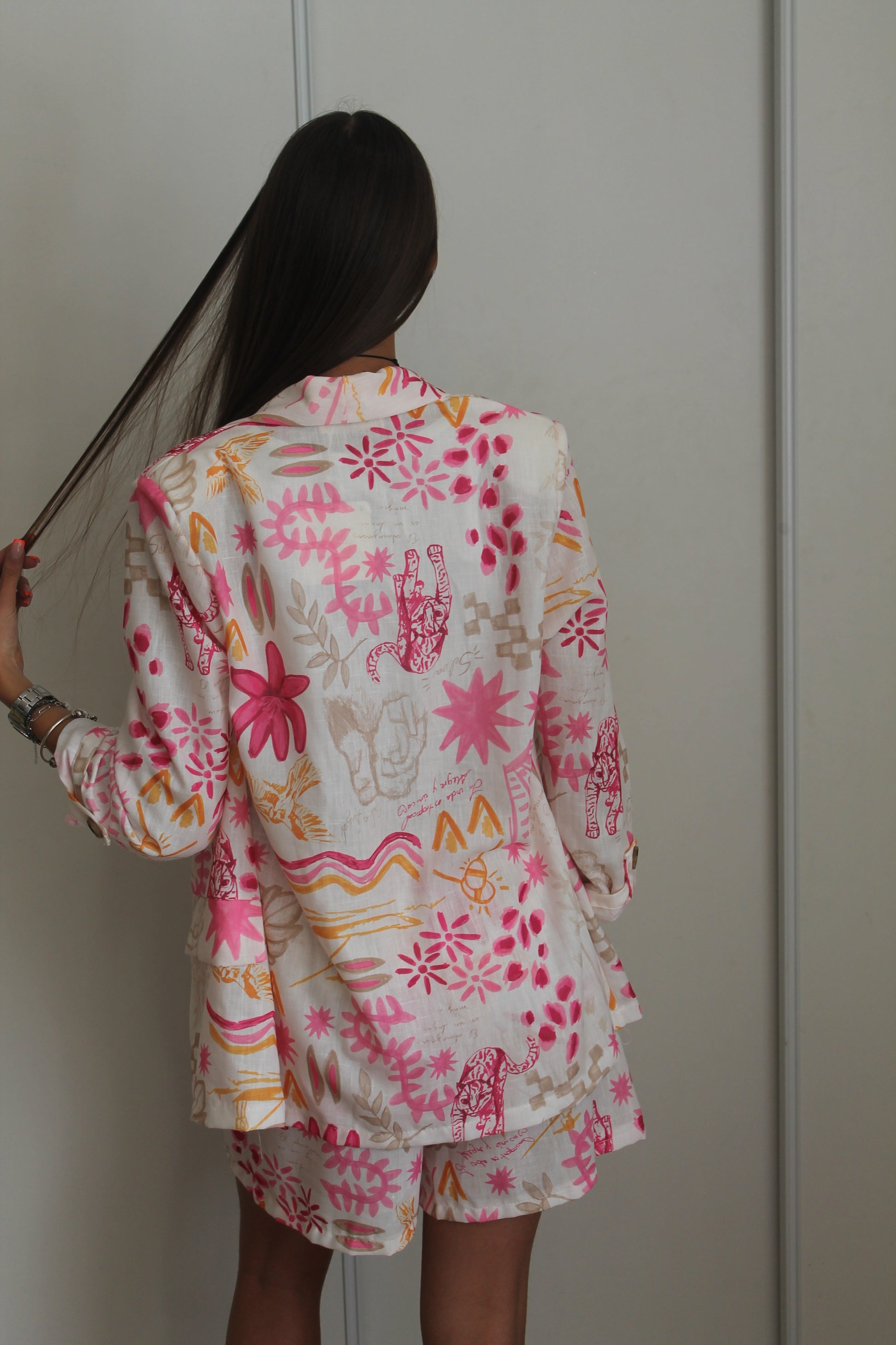 Blazer structuré, short confortable, et une touche de peps pour ne jamais passer inaperçue.