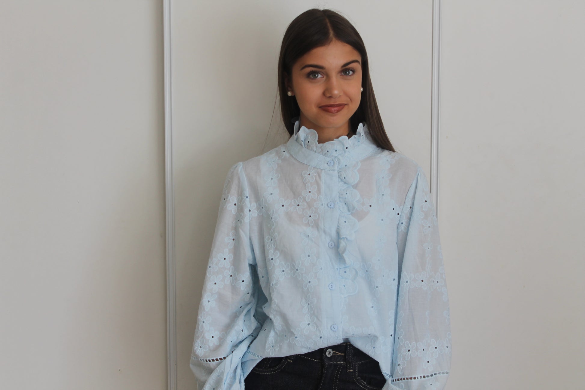 Chemise avec les broderies et sa léger transparence donne une touche de glam