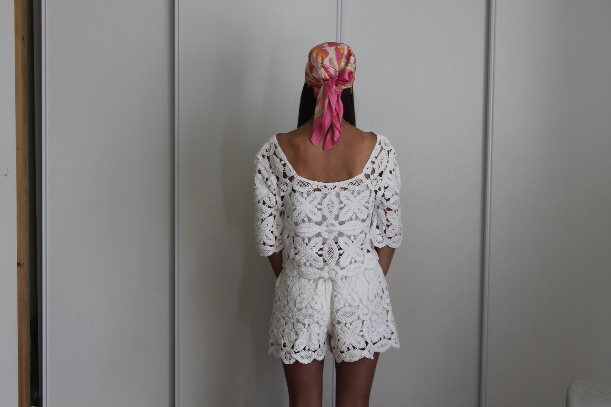 Duo croptop + short en dentelle qui mixe sensualité et confort.