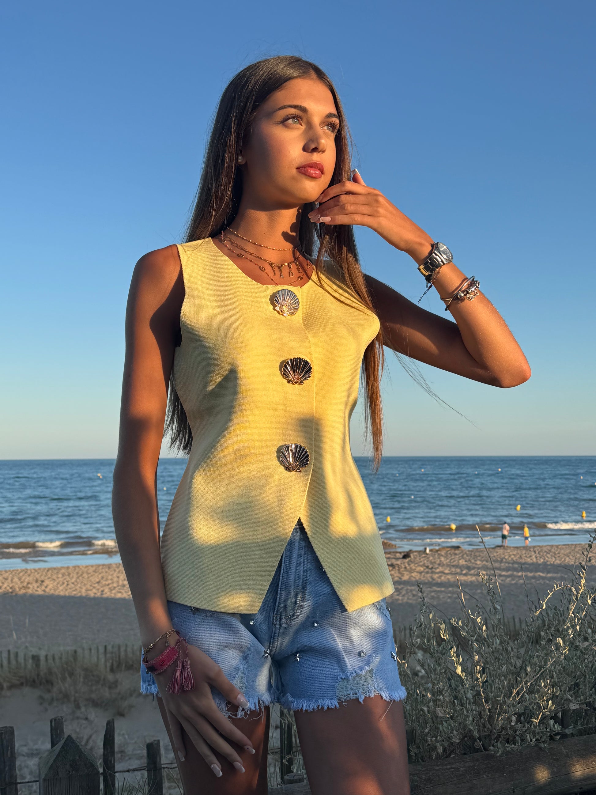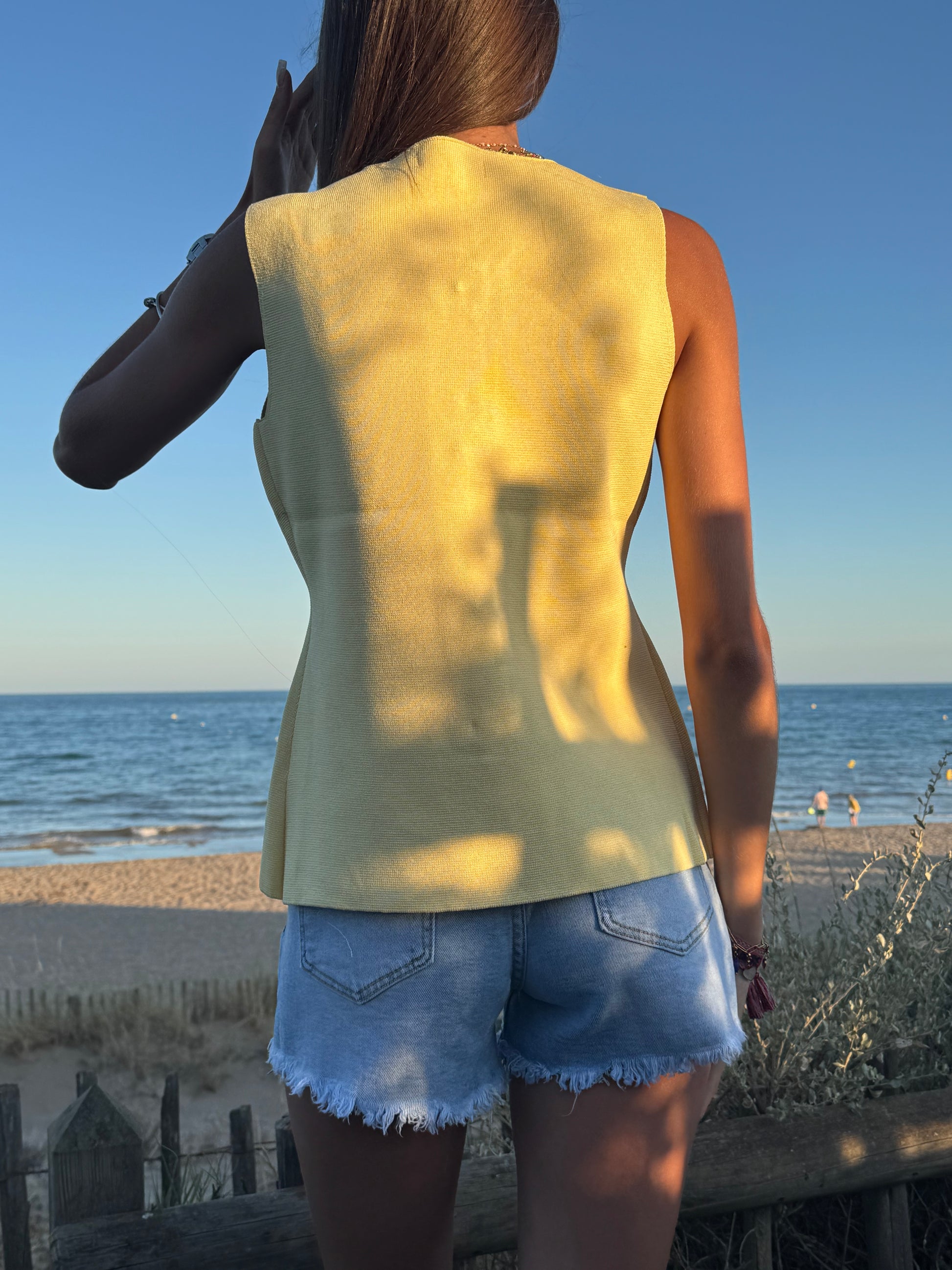 Sa coupe ajoustée met en valur la silhouette , idéal pour les beau jours , se porte aussi bien en journée qu'en soirée .
