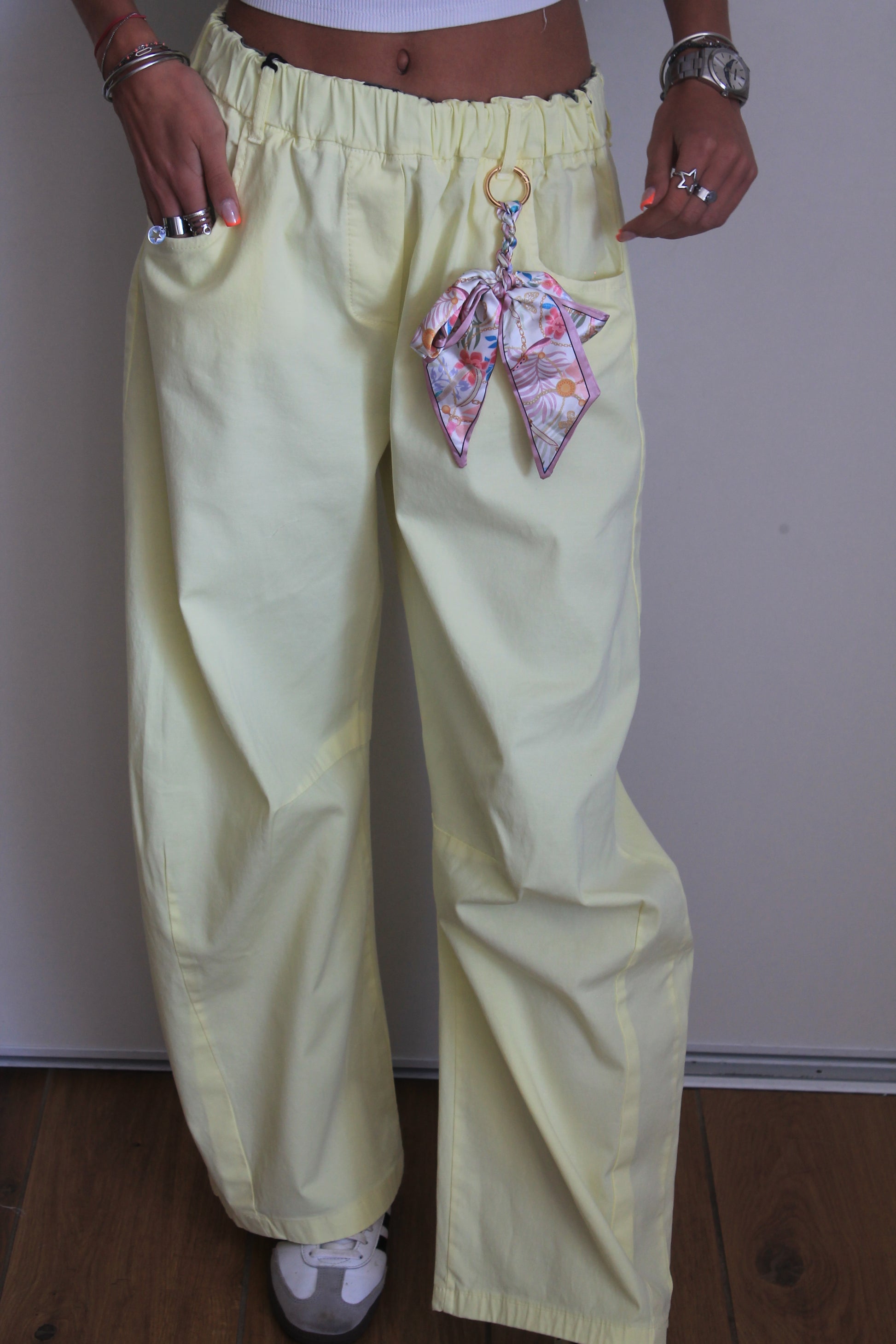 Pantalon fluide jaune pastel, taille elastique et coupe fluide ultra confort.