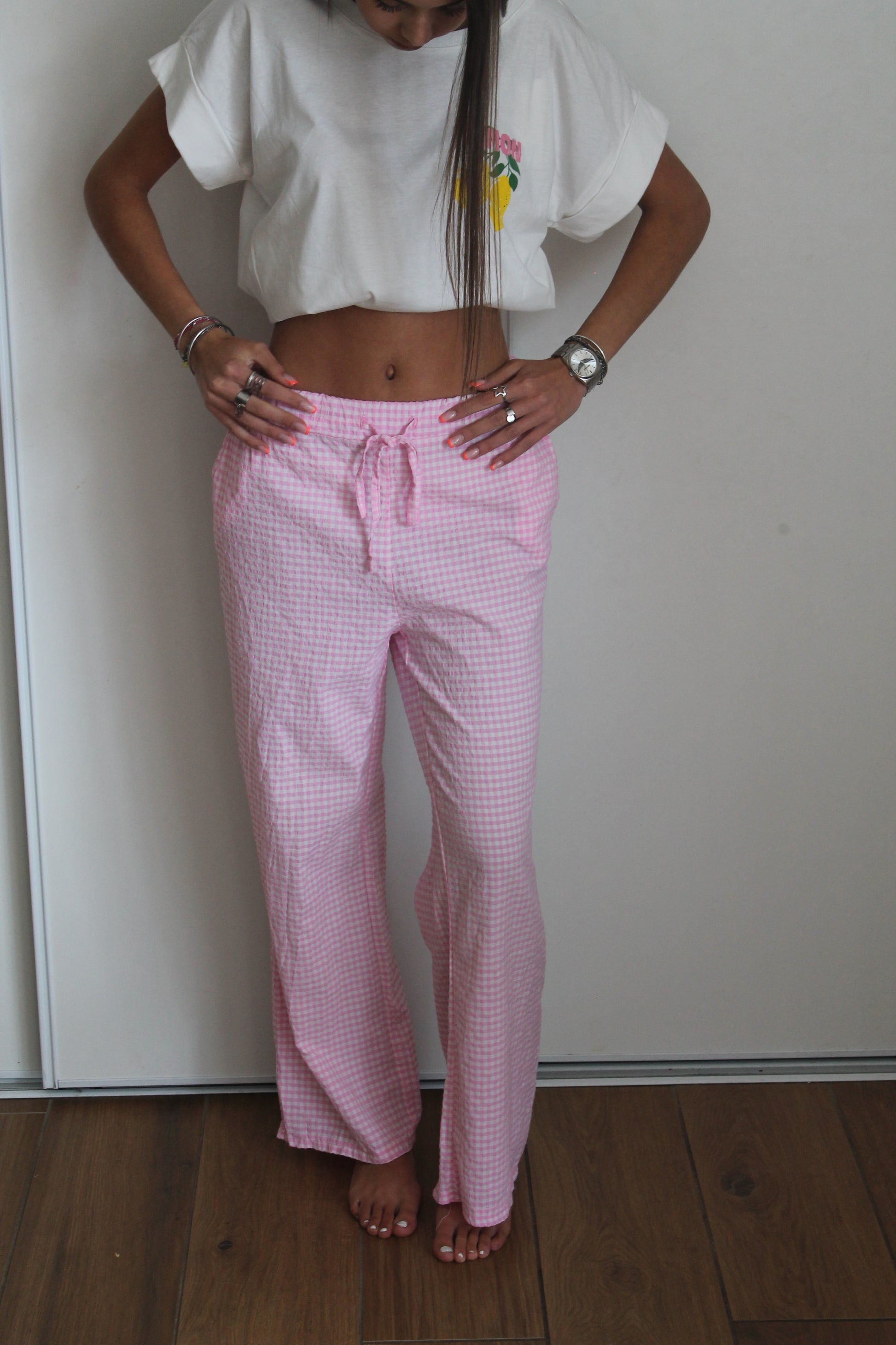 Coupe fluide et imprimé vichy intemporel.Un pantalon comfy et stylé, à matcher avec un top uni ou un debardeur blanc pour un look frais et tendance .