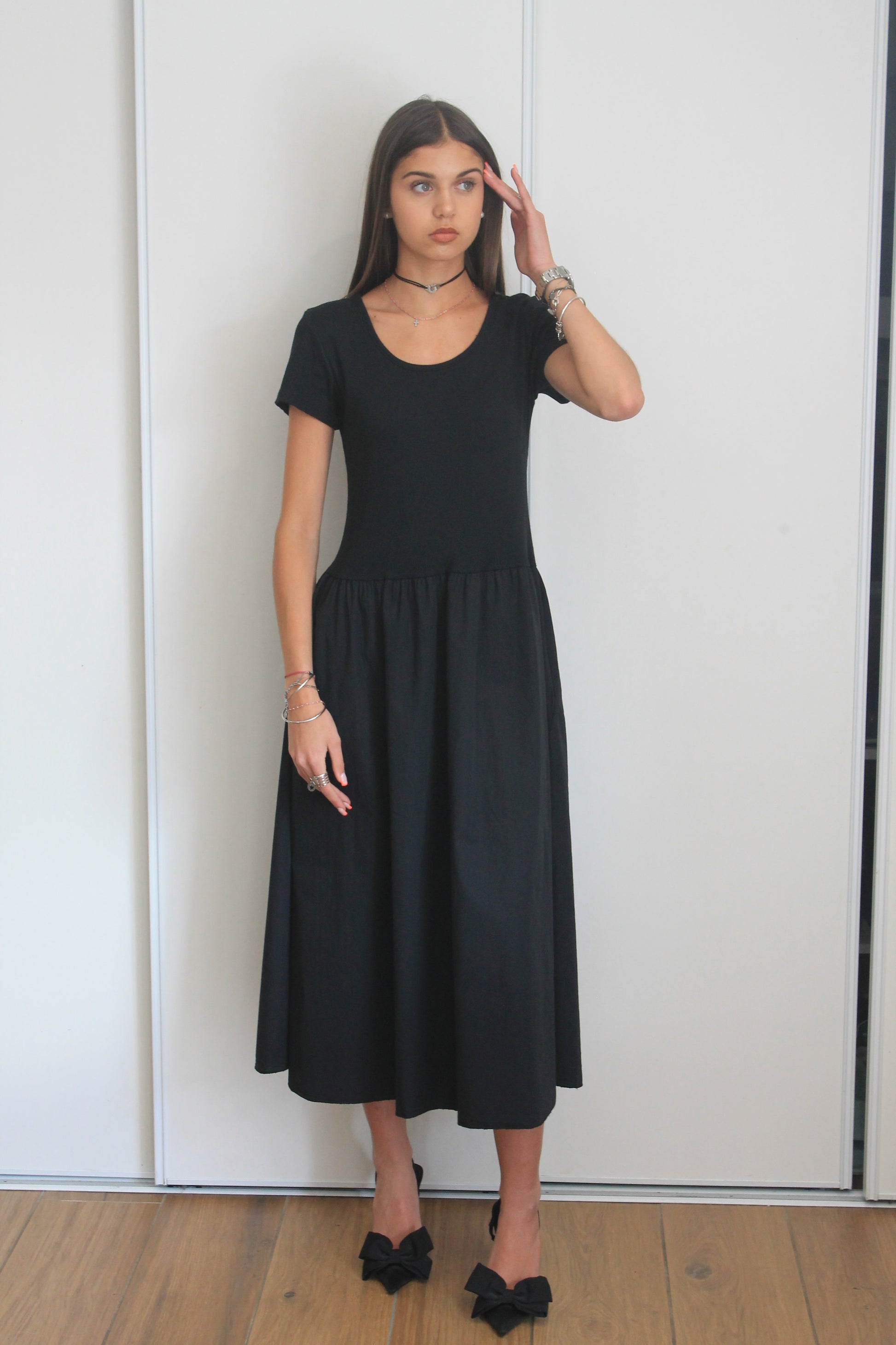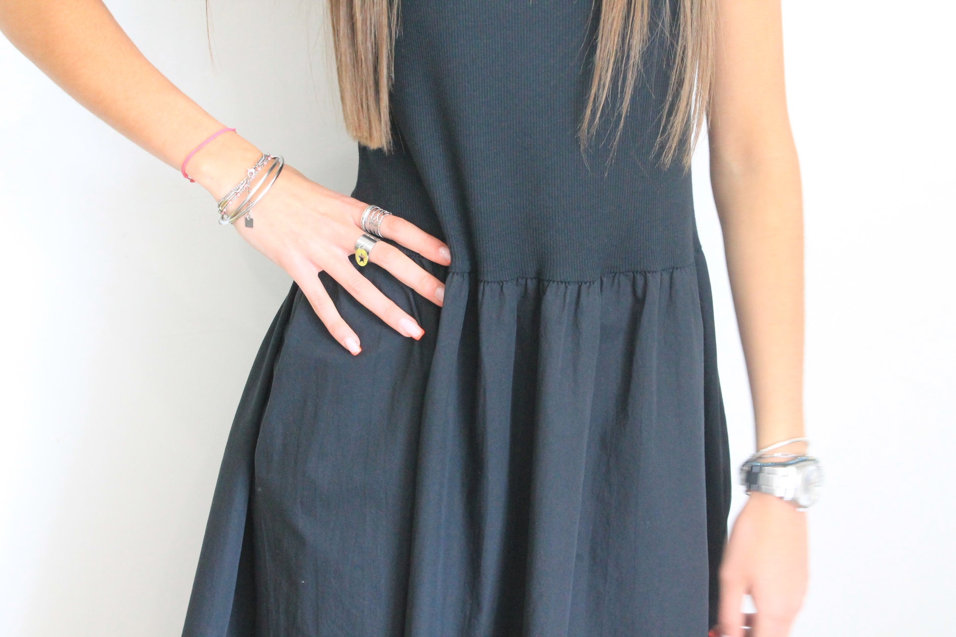 Deux couleurs, une même allure . Solar Mood revisite la robe manche courtes en version épurée et bi-matière.
